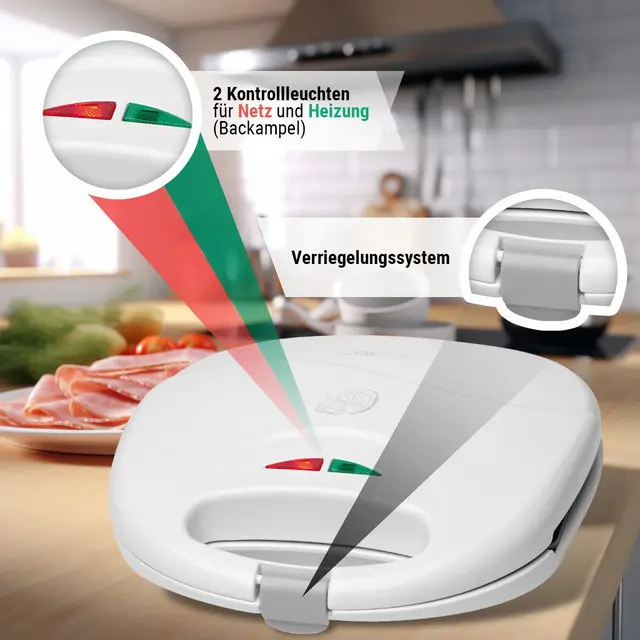 Aparat za pripravo sendvičev ST 3477 je opremljen s površino, ki se ne prijema, zato je čiščenje lažje. Opremljen je z varnostno ključavnico in zaščito pred pregrevanjem. Temperatura pečenja se nastavi samodejno, zato je njegova uporaba zelo preprosta. Ročaj je toplotno izoliran. Na delovanje opozarjata 2 indikatorja, od katerih eden prikazuje stanje napajanja, drugi pa, da je bila dosežena zahtevana temperatura. Napajanje je 220-240 V, 50 Hz, moč pa 750 W.
