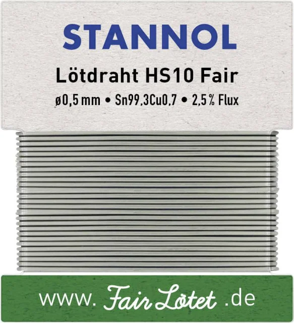 Stannol mehka spajkalna žica HS10 Fair v zlitini Flowtin + TC Sn99Cu1 z 2,5-odstotno vsebnostjo pretoka 0,5mm s premerom na navijalni kartici 10 g Sta