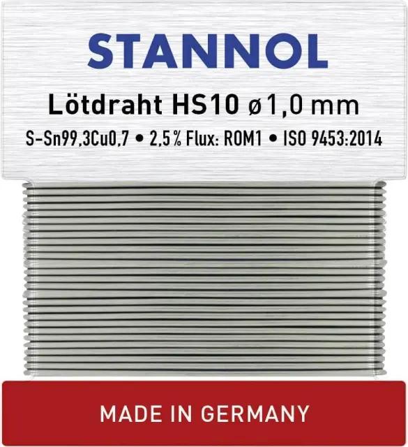 Stannol Radiolot-Wickel HS10 TC Sn99Cu1 zlitina z 2,5% pretoka 1,0mm v premeru na 30 g navijalne kartice Stannol HS10 spajkalna žica, neosvinčena neos