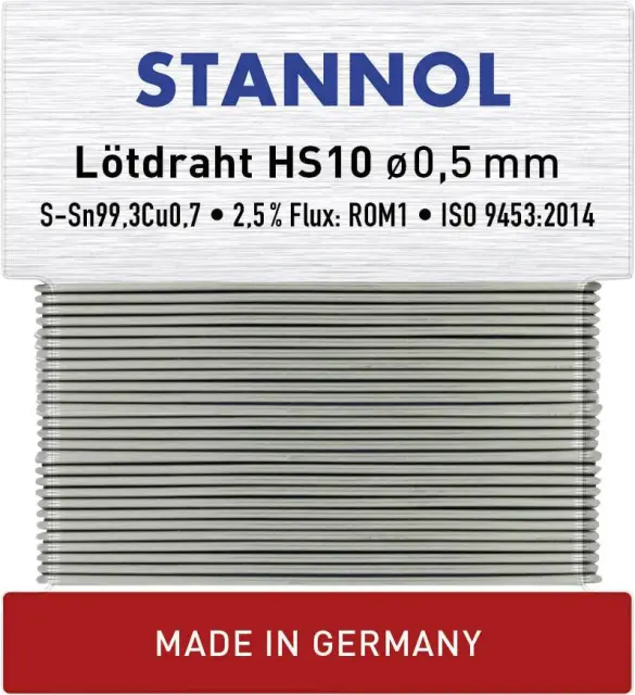 Stannol Radiolot-Wickel HS10 TC Sn99Cu1 zlitina z 2,5% pretoka 0,5mm premera na navijalni kartici 10g Stannol HS10 spajkalna žica, neosvinčena neosvin