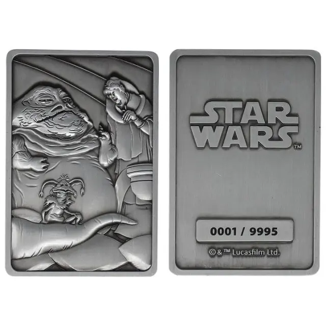 Opis izdelka Ta uradno licenciran kovinski zbirateljski kolekcijo Vojne zvezd je omejen na 9.995 po vsem svetu in posamično oštevilčen. Vsebuje ikonični prizor iz filma, meri približno 75 x 50 mm in je vtisnjen na obeh straneh. Kos je na voljo v razstavni škatli skupaj s stojalom. Škatla vsebuje Ingot iz Vojne zvezd