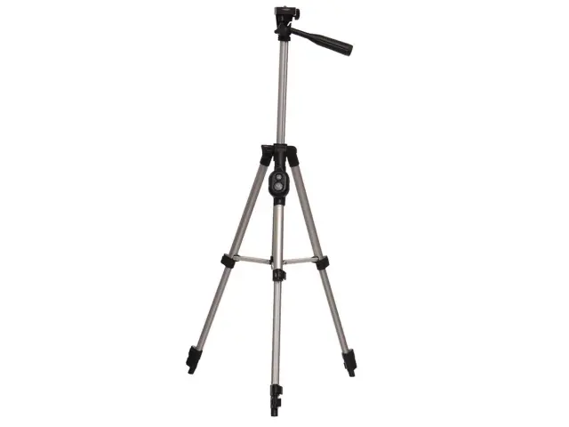 Stativ ima univerzalni navoj za fotoaparate, laserje in kamere ter nosilec za telefone. Opremljen s teleskopskimi raztegljivimi nogami s štirimi stopnjami nastavitve višine. Robustna konstrukcija zagotavlja stabilno in gladko sliko. Višina stojala je od 34cm do 100cm.