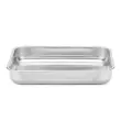 Revolucionarni STEEL PAN PRAVOKOTEN PEKAČ se ponaša z izjemno notranjo površino z odtisnjenimi mikro vzorci, ki preprečujejo sprijemanje hrane. Ekološki premaz proti sprijemanju ne vsebuje kemikalij in je brez PFOA. Patentirana linija Steel Pan je narejena iz trdnega nerjavečega jekla 18/10, ki poskrbi, da se toplota enakomerno porazdeli po celotni površini, zato je pečenje še bolj učinkovito in mogoče pri nizkih do srednjih nastavitvah temperature. Uporabite ga lahko v pečici na temperaturi do 230 °C. Pri rezanju, mešanju ali kuhanju lahko brez strahu uporabljate vse pripomočke, ne da bi pri tem poškodovali površino. Dva priročna ročaja iz nerjavečega jekla poskrbita za lažje prenašanje pekača. Čiščenje je enostavno, saj ga lahko pomijete kar v pomivalnem stroju. NAMIG: Za najboljši rezultat pred uporabo pekač rahlo namažite z majhno količino jedilnega olja.