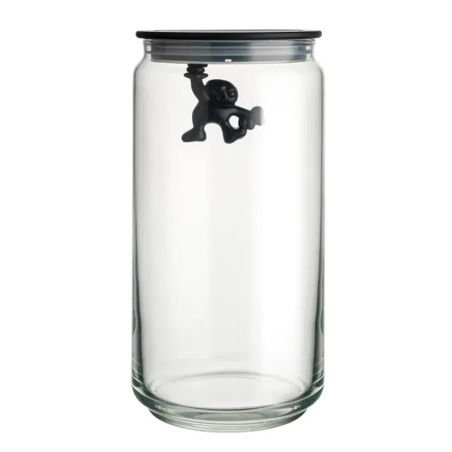 Steklena doza s pokrovom Gianni je funkcionalen in igriv kozarec za shranjevanje, ki ga je zasnoval italijanski oblikovalec Mattia Di Rossa tako, da ohrani vsebino dlje časa svežo. Doza je narejena iz trpežnega stekla, pokrov pa iz termoplastične smole. Unikatnost ji daje domiseln pokrov na katerem se drži majhen možicelj. Doza bo zato zagotovo privabljala poglede, všeč pa bo tudi otrokom. V njej lahko shranjujete piškote, bonbone, sladkor, sol, moko, pšenični zdrob, kavo … Svežina je zagotovljena, saj kozarec zapira hermetični pokrov. Mattia Di Rosa Umetnik Mattia Di Rosa se je rodil v Carrari (Italija) leta 1969. Trenutno tudi dela in živi v Italiji. Njegov obsesiven eksperimentalni pristop se osredotoča na njegovo navdušenje nad napakami in naključjem. S podjetjem Alessi sodeluje od že leta 1992.