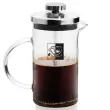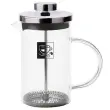 ✅ TRPEŽEN - Vrč z ročajem je izdelan iz prozornega stekla. Pokrov in bat sta izdelana iz najkakovostnejšega srebrnega nerjavečega jekla. Steklo je odporno na temperature do 180 °C.