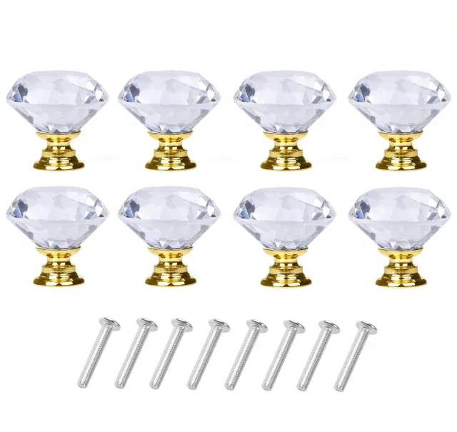 Stekleni gumbi v obliki diamanta prozorni/zlati 8 kosov