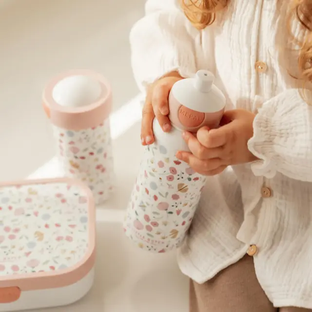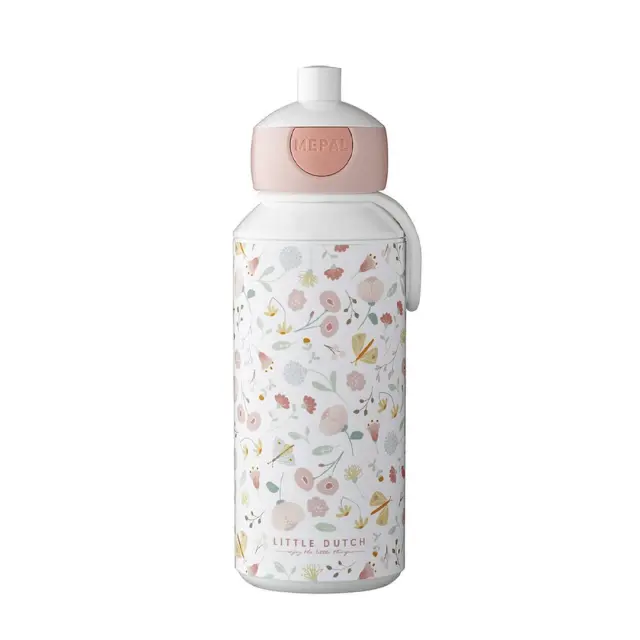 Otroška steklenica Pop-Up Flowers & Butterflies (400 ml) deluje na princip Pritisni in Pij - Push and Drink. S pritiskom na gumb z napisom Mepal se odpre ustnik za pitje, s pritiskom nanj pa se steklenica zapre. Zelo priročna je v aktivnih trenutkih in za hiter vmesni požirek. Pop-up steklenica za pitje s potiskom majhnih nizozemskih rožic in metuljev je neprepustna in enostavna za uporabo v majhnih otroških rokah. Opremljena je s priročno silikonsko zanko, s katero jo brez težav vzamete s seboj. Pokrovček je enostavno razstaviti. Primerna je za pomivanje v pomivalnem stroju. Lunch Box Flowers & Butterflies - otroška posoda za shranjevanje in prenašanje malice, sadja in prigrizkov je na voljo ločeno.
