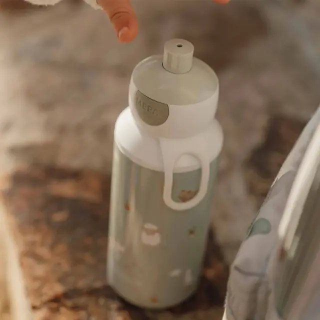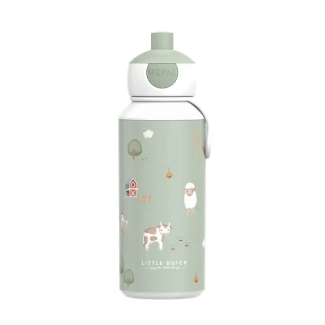 Otroška steklenica Pop-Up Little Farm (400 ml) deluje na princip Pritisni in Pij - Push and Drink. S pritiskom na gumb z napisom Mepal se odpre ustnik za pitje, s pritiskom nanj pa se steklenica zapre. Zelo priročna je v aktivnih trenutkih in za hiter vmesni požirek. Pop-up steklenica za pitje s potiskom živali na kmetiji je neprepustna in enostavna za uporabo v majhnih otroških rokah. Opremljena je s priročno silikonsko zanko, s katero jo brez težav vzamete s seboj. Pokrovček je enostavno razstaviti. Primerna je za pomivanje v pomivalnem stroju. Lunch Box Little Farm - otroška posoda za shranjevanje in prenašanje malice, sadja in prigrizkov je na voljo ločeno.