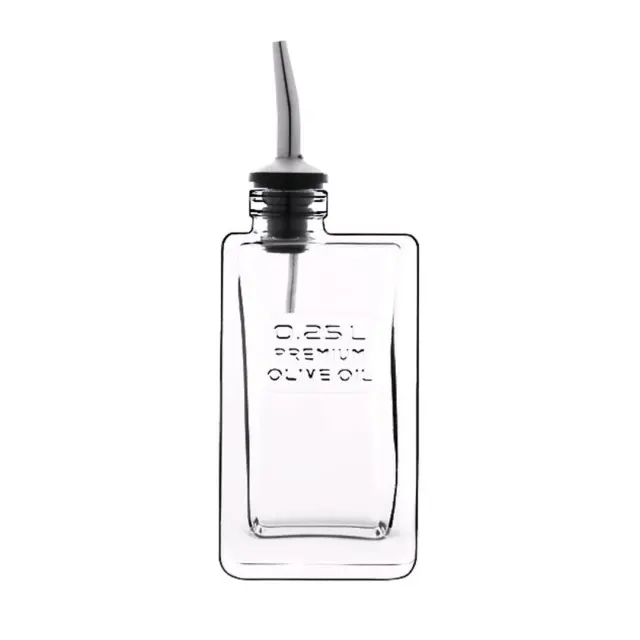 Steklenica za olje Optima je del prestižne blagovne znamke steklenih izdelkov Luigi Bormioli. Izdelana je iz visokokakovostnega stekla s kovinskim merilnim pokrovčkom za enostavno vlivanje olja na solato, sire ali v ponev. Zahvaljujoč elegantnemu izgledu se bo ujemala s katerim koli kuhinjskim kompletom, ki ga že imate. Enostavno jo pomijte v pomivalnem stroju.