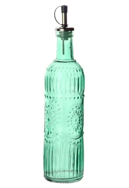 Steklena steklenica za olje iz serije MODERN KITCHEN združuje funkcionalnost in sodoben dizajn. Izdelana iz kakovostnega stekla v nežni zeleni barvi, meri 7 x 7 x 29 cm in ima prostornino 510 ml - dovolj za vsakodnevno odmerjanje olj, aromatiziranih olj ali domačih prelivov. Vzdržljiva in higienična površina stekla omogoča preprosto čiščenje, prosojen material pa omogoča hitro kontrolo količine in kakovosti vsebine.