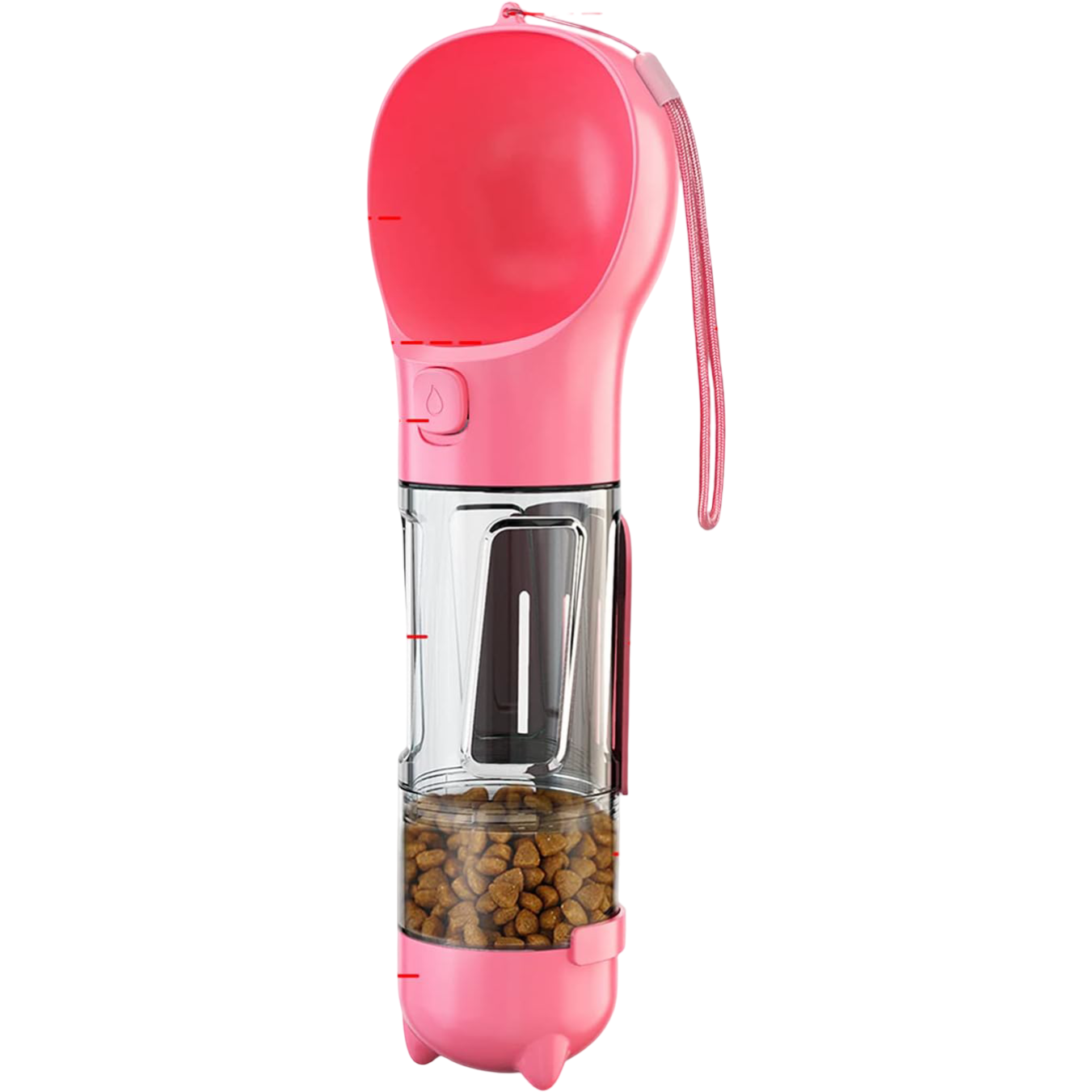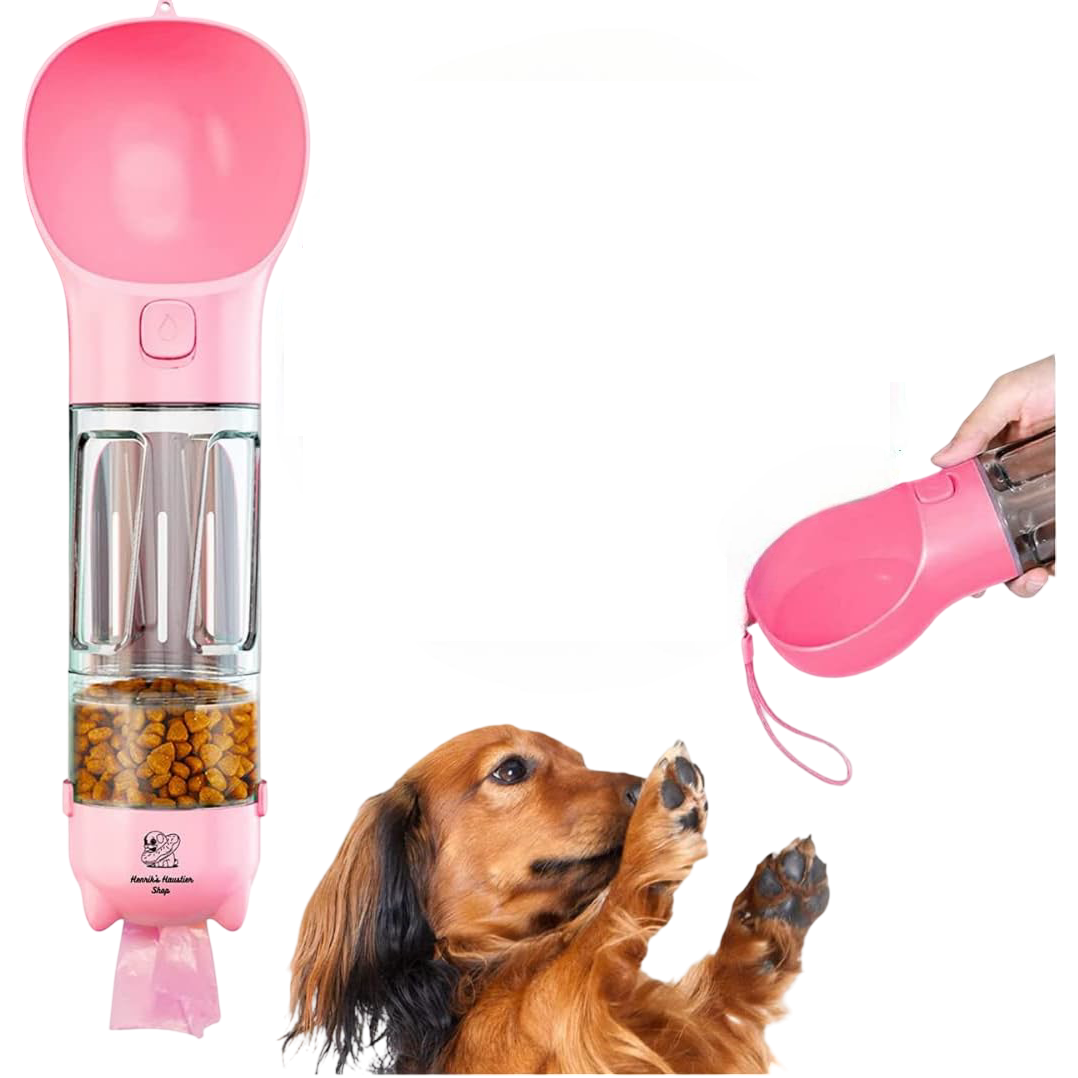 Ta steklenica za psa je praktična rešitev, ki združuje več funkcij v eni napravi za maksimalno udobje med aktivnostmi na prostem. Z uporabo te steklenice bosta sveža voda in hrana vedno na voljo, kar zagotavlja funkcionalnost na vsakem koraku. Izberite ta priročen pripomoček in poskrbite za brezskrbne sprehode z vašim ljubljenčkom še danes.
