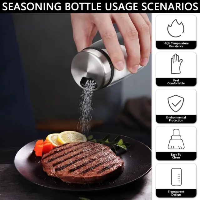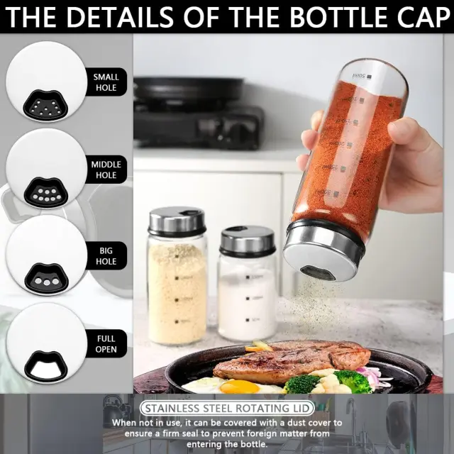 【Material】Kozarci za začimbe so narejeni iz borosilikatnega stekla, kar pomeni, da so odporni na vročino, jih ni enostavno počiti, lahki in močni. Poleg tega so odporne na kisline in alkalije.【Zasnova s 4 luknjami】Škatla za shranjevanje zelišč in začimb ima 4 vrtljive luknje za začimbe, ustrezne luknje pa lahko izberete glede na debelino začimb in različne scenarije uporabe.[Prozorno Steklenica] Deli kozarca iz borosilikatnega stekla so zelo pregledni, lepi in intuitivni, kar omogoča preprosto prepoznavanje začimb v steklenički in preprečevanje zaužitja napačnih začimb [Protizdrsna oblika] Dno kozarca za začimbe iz borosilikatnega stekla ima okrogel konkavno in konveksno dno, ki je bolj stabilno in odporno na udarce.【Uporaba】Kozarec za shranjevanje je primeren za sol, poper ali druge začimbe pri kuhanju doma, v restavraciji ali na žaru na prostem; vedno imate vse, kar morate obdržati.