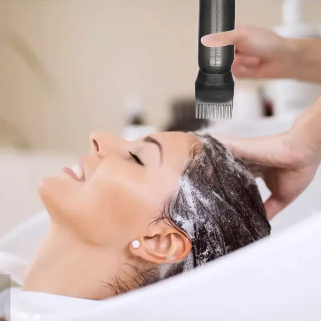 Enostavnost uporabe: Steklenička za nanašanje je zasnovana za enostavno in nezahtevno uporabo. Preprosto napolnite stekleničko z izbrano barvo za lase ali tretmajem in jo nato razčešite po laseh.