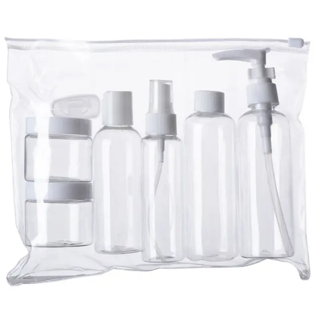 Stekleničke in potovalne posodice za kozmetiko za letalo s kozmetično torbico, 8 kosov.