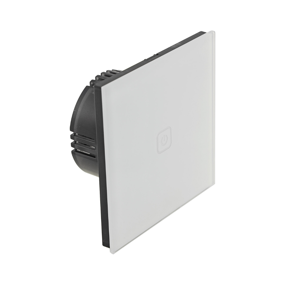 Podometno stikalo z upravljanjem na dotik z integriranim radijskim sprejemnikom za serijo PC. Deluje z radijskimi oddajniki, kot so ročni daljinski upravljalnik 22276, radijska stikala 22278/22279 ali detektorji gibanja 22756/22757. Poleg tega lahko preklapljanje opravite z dotikom neposredno na napravi.