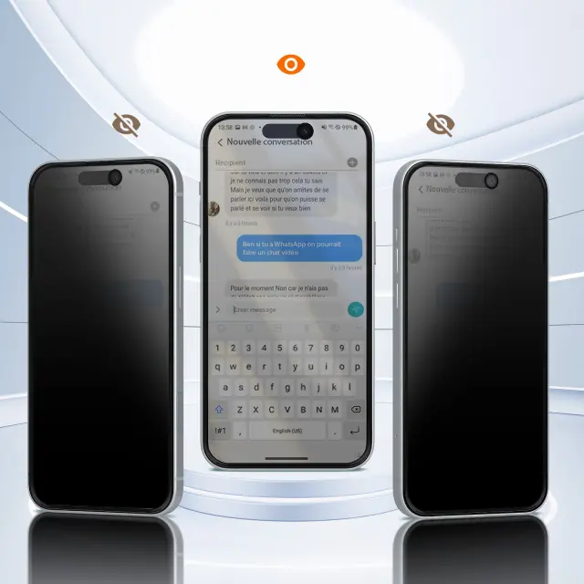 Steklo proti vohunjenju za iPhone 16 Trdota 9H Proti sledenju, Črna