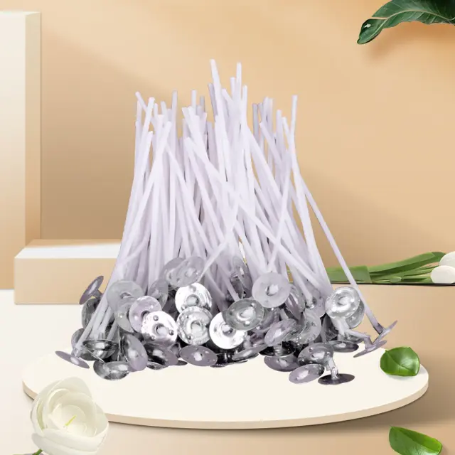 Povoščeni stenji na stopalih, pripravljeni za uporabo in v praktičnem pakiranju po 100 kosov. S svojo dolžino 2,6 cm so ti stenji popolni za izdelavo lastnih čajnih svečk. Stenj je narejen iz kvalitetne žice, ki gori z lepim, stabilnim plamenom.