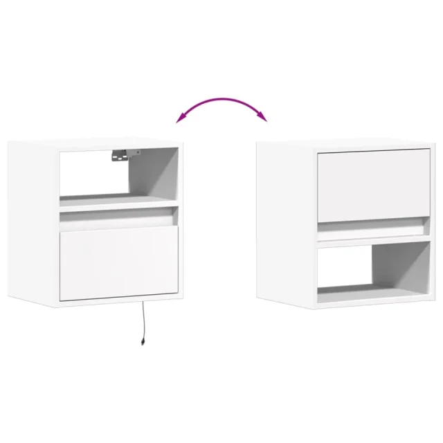 Stenska Nočna omarica - Nočna miza z LED lučkami bela