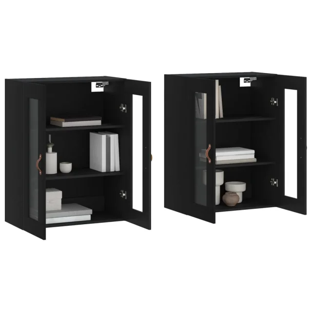 Stenska omarica - Zidna omarica 2 kosa črn inženirski les iu1242
