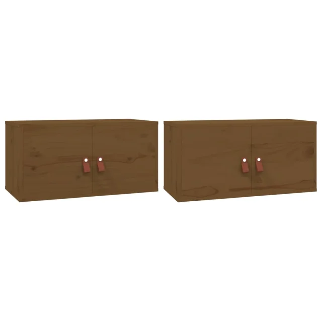 Stenska omarica - Zidna omarica 2 kosa medeno rjava 60x30x30 cm trdna borovina iu1114