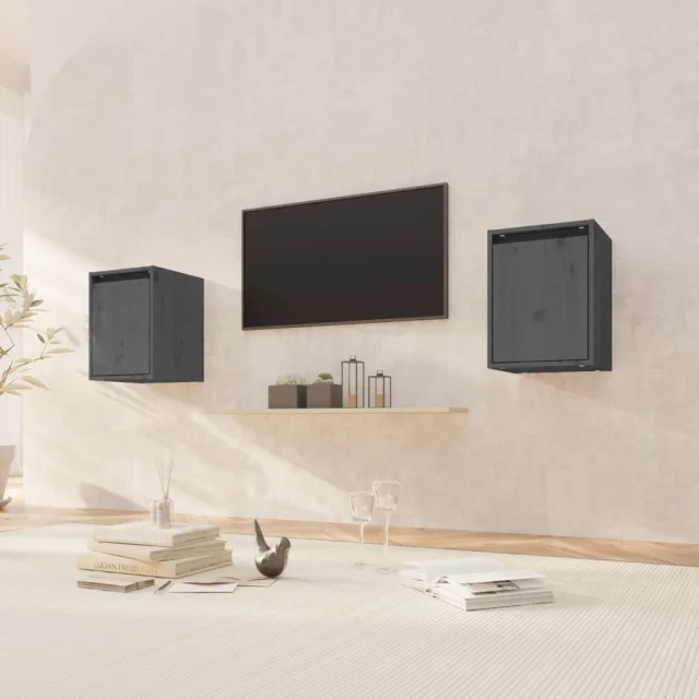 Stenska omarica - Zidna omarica 2 kosa siva 30x30x40 cm trdna borovina iu715