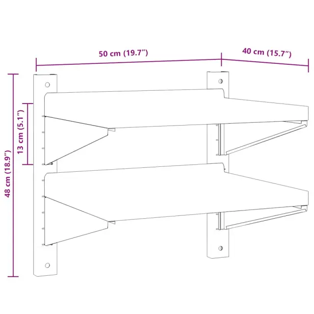 Stenska polica - Viseča Polica 2-nadstropna 50x40x48 cm srebrna nerj. jeklo