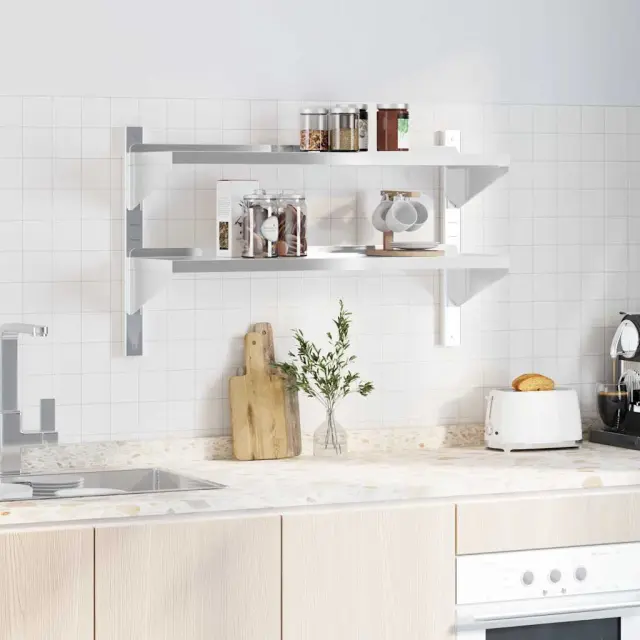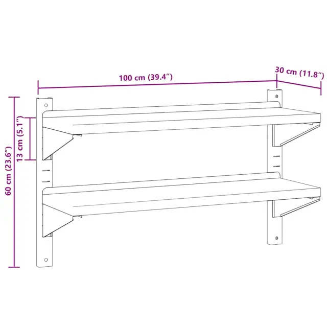 Stenska polica - Viseča Polica 2-nadstropna 100x30x60 cm srebrna nerj. jeklo