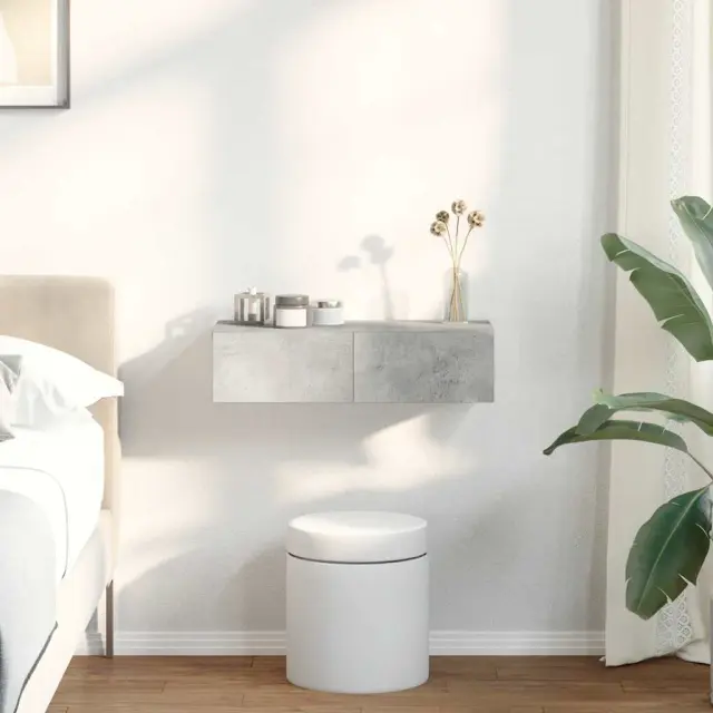 Stenska polica - Viseča Polica s predali betonsko siv 60x26,5x15 cm inž. les