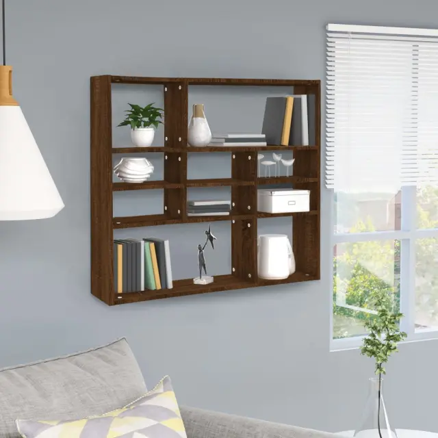 Stenska polica - Viseča Polica rjavi hrast 90x16x78 cm inženirski les