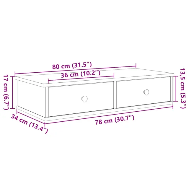 Stenska polica - Viseča Polica s predali betonsko siv 80x34x17 cm inž. les