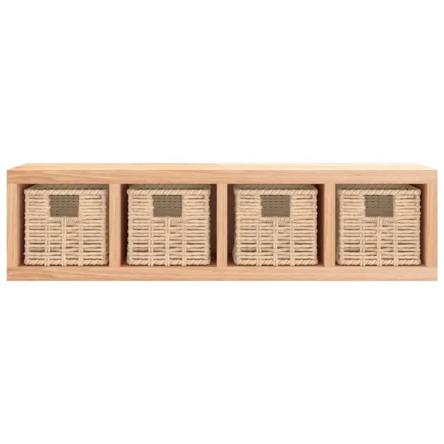 Stenska polica - Viseča Polica s košarami 62x18x16 cm trdna orehovina