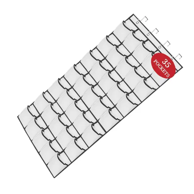 Dizajn, ki prihrani prostor: Povečajte prostor za shranjevanje s tem stenskim organizatorjem s 35 predelki. Njegova kompaktna zasnova je kot nalašč za majhne sobe, omare ali za vrata, saj zagotavlja veliko dodatnega prostora za shranjevanje, ne da bi zavzel dragocen prostor na tleh.