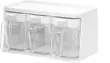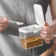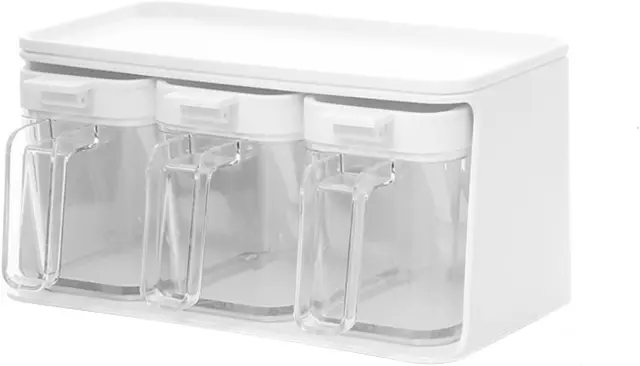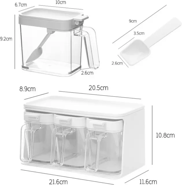 Glavni materiali so PP, MS in PP, ki ustrezajo živilskim standardom, ki so varni, neškodljivi in vzdržljivi. Prozoren material vam omogoča, da v vsakem trenutku veste, koliko začimb je ostalo, in hitro najdete začimbe, ki jih potrebujete med kuhanjem. Vsaki škatli začimb je priložena žlička in vsaka začimba ima svojo žlico, tako da se okusi različnih začimb ne motijo drug z drugim. Žlico lahko obesite v škatlo, ki je čista in higienska. Ergonomski ročaj je enostaven za držanje, škatlo za začimbe pa je mogoče odpreti z eno roko za enostavno upravljanje. Škatlo za začimbe lahko postavite na pult ali obesite na steno . Nameščen z brezšivnim lepilom je zelo stabilen in ne zahteva vrtanja ali žebljev. OPOMBA: Ni primerno za neravne površine, kot so tapete in opečne površine.