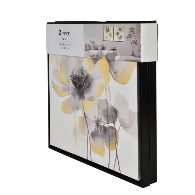 Komplet stenskih slik na platnu INGA vključuje 2 usklajena motiva v velikosti 40x40 cm, ki prostoru dodata sodoben in eleganten dekorativni poudarek. Stilizirane cvetlične kompozicije v prefinjeni kombinaciji črne in zlate ustvarjajo izrazit, a uravnotežen videz, ki se lepo poda tako modernim kot tudi bolj klasično zasnovanim interierjem.