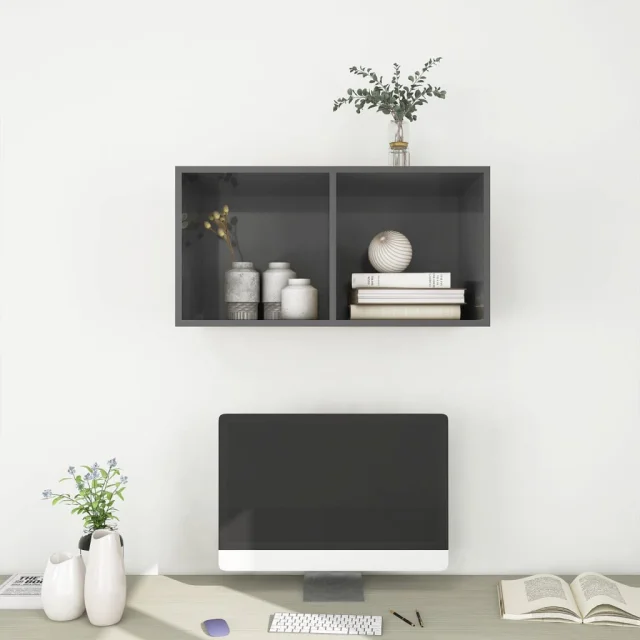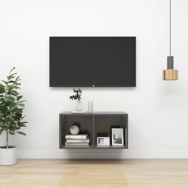 Stenska TV omarica - TV stojalo - Televizijska omarica visok sijaj siva 37x37x72 cm iverna plošča