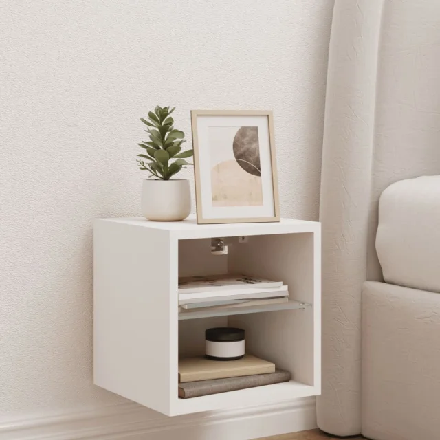 Stenska TV omarica - TV stojalo - Televizijska omarica z LED lučkami bela 30x28,5x30 cm