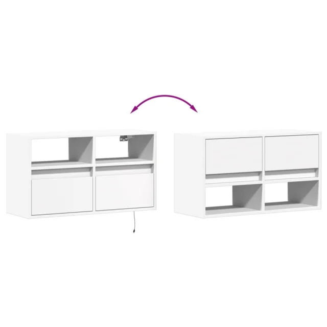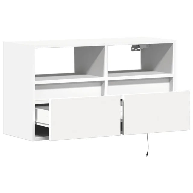 Stenska TV omarica - TV stojalo - Televizijska omarica z LED lučkami bela 80x31x45 cm