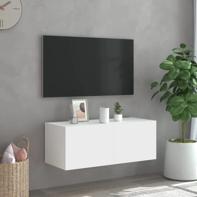 Stenska TV omarica - TV stojalo - Televizijska omarica z LED lučkami bela 80x35x31 cm