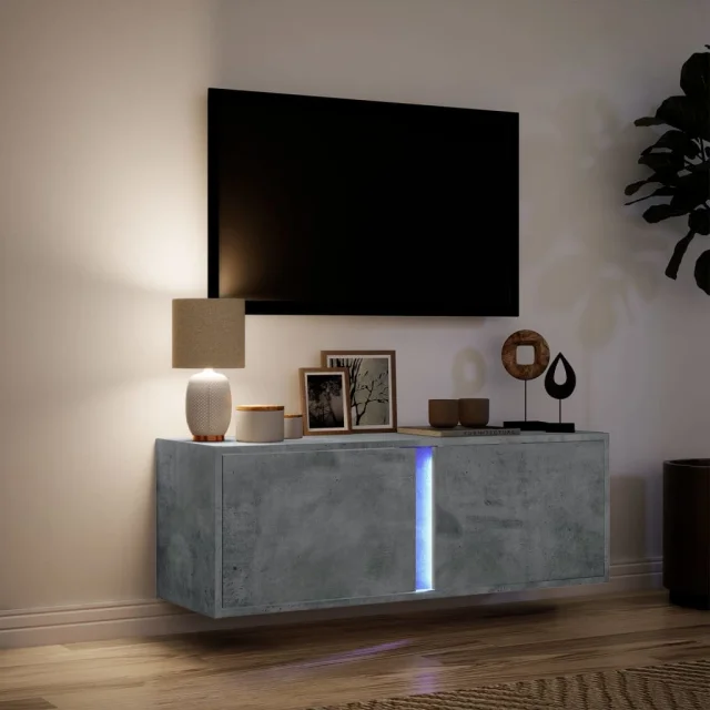 Stenska TV omarica - TV stojalo - Televizijska omarica z LED lučkami betonsko siva 100x31x35 cm