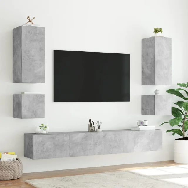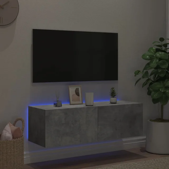 Stenska TV omarica - TV stojalo - Televizijska omarica z LED lučkami betonsko siva 100x35x31 cm