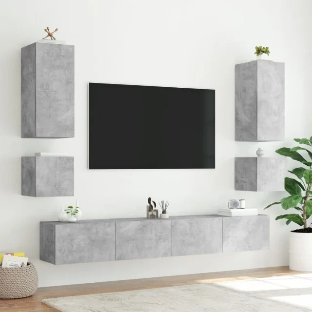 Stenska TV omarica - TV stojalo - Televizijska omarica z LED lučkami betonsko siva 100x35x41 cm