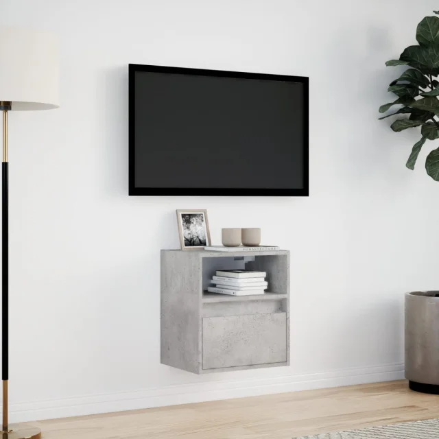 Stenska TV omarica - TV stojalo - Televizijska omarica z LED lučkami betonsko siva 41x31x45 cm