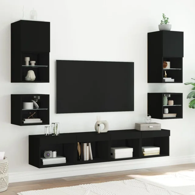 Stenska TV omarica - TV stojalo - Televizijska omarica z LED lučkami črna 30x28,5x30 cm