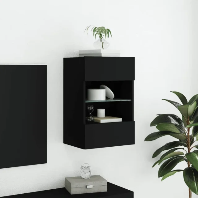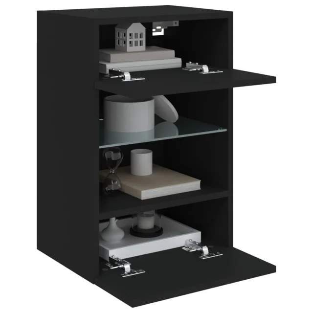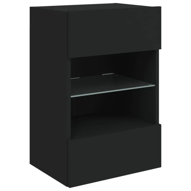 Stenska TV omarica - TV stojalo - Televizijska omarica z LED lučkami črna 40x30x60,5 cm