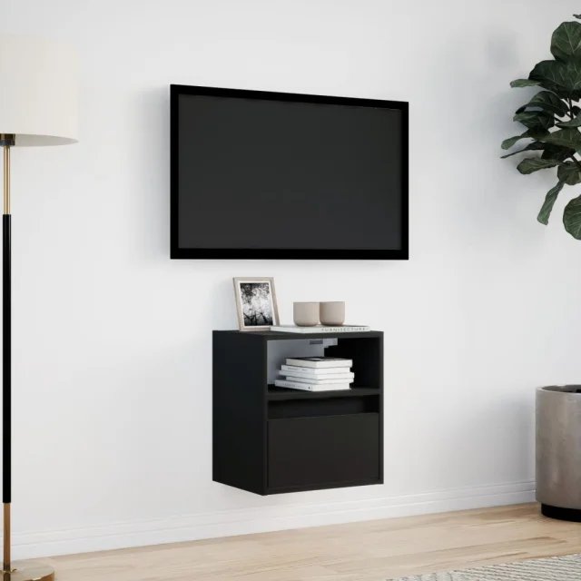 Stenska TV omarica - TV stojalo - Televizijska omarica z LED lučkami črna 41x31x45 cm