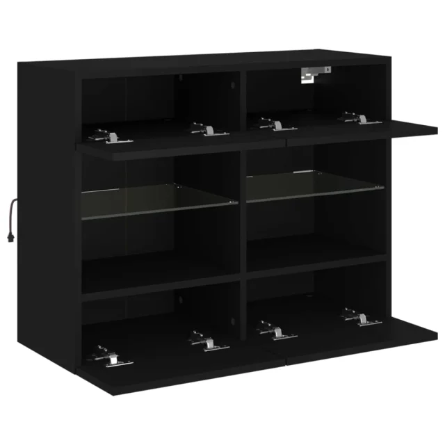 Stenska TV omarica - TV stojalo - Televizijska omarica z LED lučkami črna 78,5x30x60,5 cm