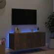 Stenska TV omarica - TV stojalo - Televizijska omarica z LED lučkami dimljeni hrast 100x35x41 cm