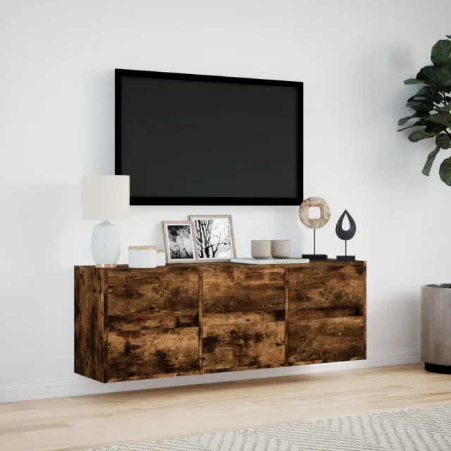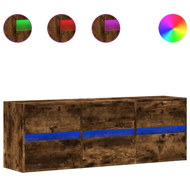 Stenska TV omarica - TV stojalo - Televizijska omarica z LED lučkami dimljeni hrast 130x31x45 cm
