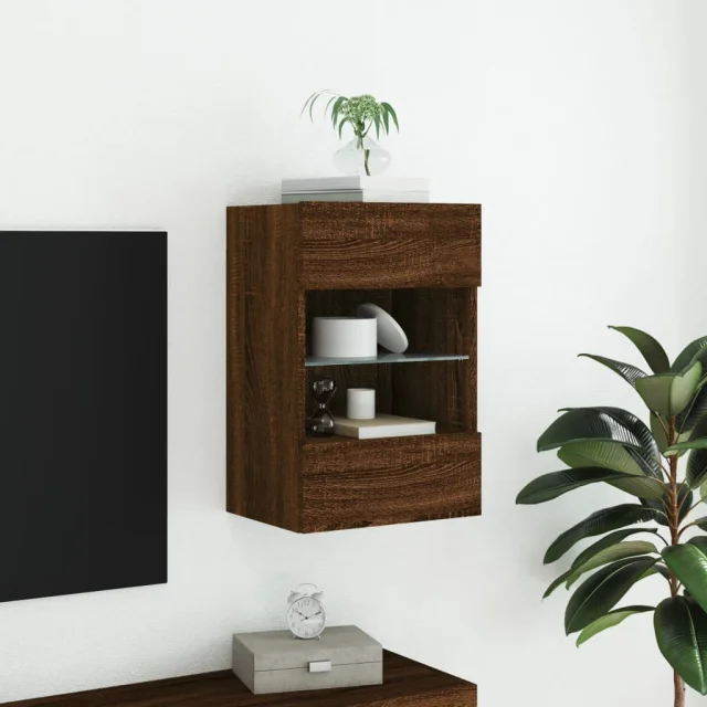 Stenska TV omarica - TV stojalo - Televizijska omarica z LED lučkami rjavi hrast 40x30x60,5 cm