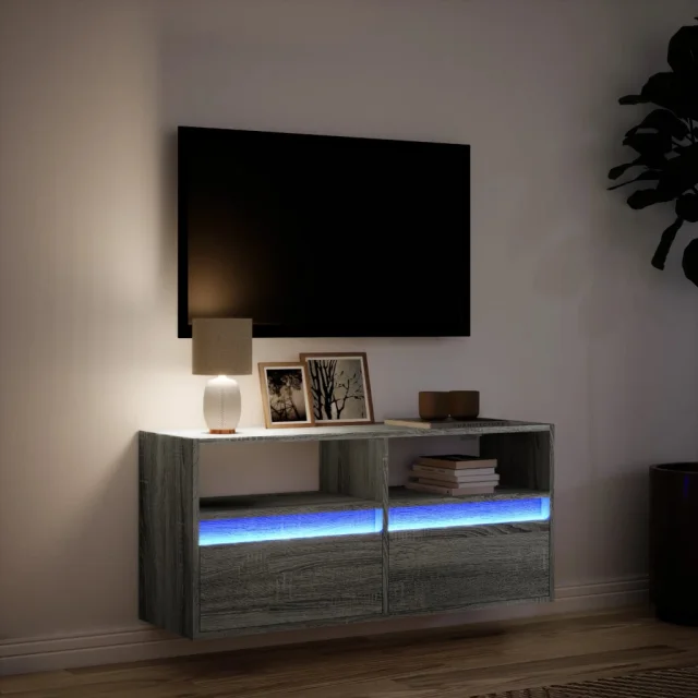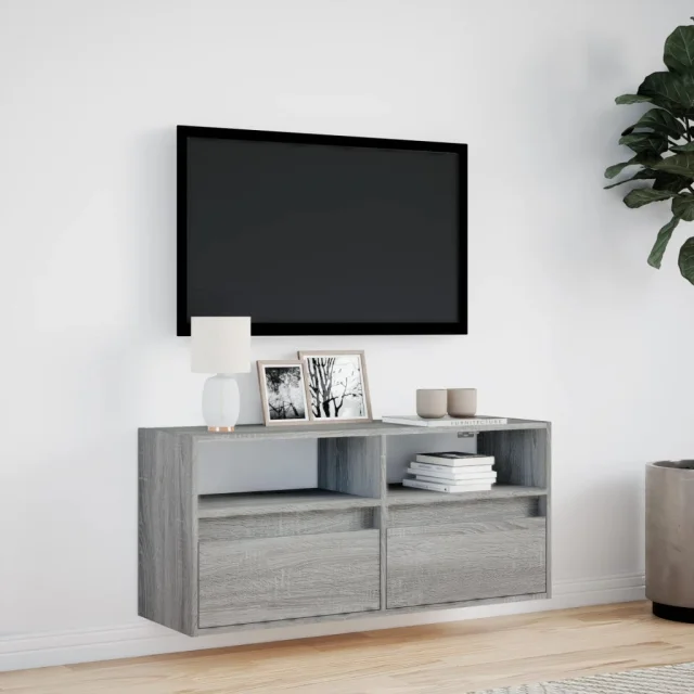 Stenska TV omarica - TV stojalo - Televizijska omarica z LED lučkami siva sonoma 100x31x45 cm
